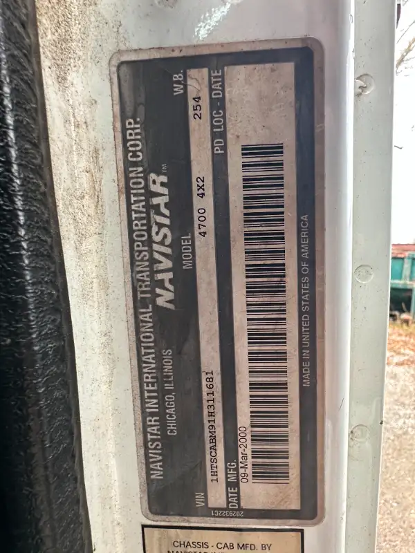 2000 INTERNATIONAL 4700 4X2 ROLL OFF TRUCK.