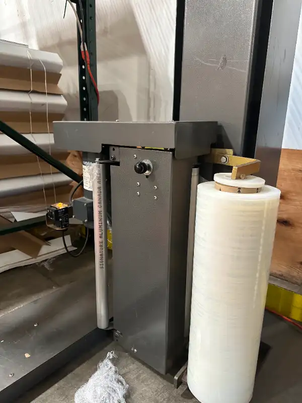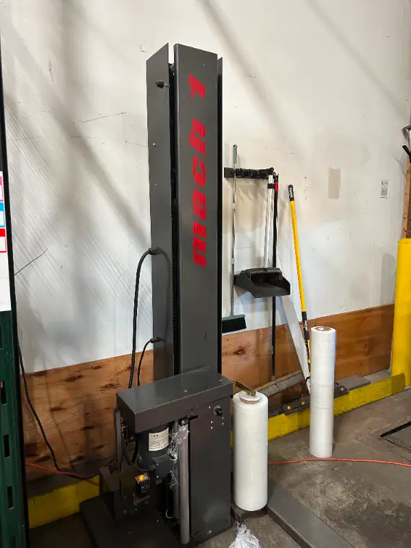2015 MACH 1 SONIC LPX SEMI-AUTOMATIC TURNTABLE PALLET STRETCH WRAPPER. 110VAC, 1PH, 60HZ, 15A, MAX LOAD CAPACITY: 5000LBS, MAX LOAD SIZE: 56" X 56" X 86", ROTATION SPEED: 0 TO 16 RPM, LOADS PER HOUR: UP TO 40 LPH, ROTATION SYSTEM: TURNTABLE TYPE: ROUND, DIAMETER: 59″ (1500 MM), TURNTABLE HEIGHT (FROM FLOOR TO TOP): APPROX. 3″ (76 MM), TURNTABLE ROTATION SYSTEM: CHAIN DRIVEN, 1/2 HP, 90 VDC, SOFT START/STOP, SUPPORT: PRO-GLIDE TURNTABLE SUPPORT SYSTEM, DIGI-TECH CONTROL UNIT (MACH 1 675 CONTROL SYSTEM).
