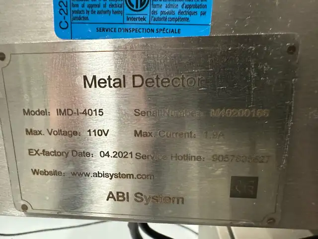 2021 ABI SYSTEM IMD-I-4015 METAL DETECTOR. 110V, 1PH, 1.9A.