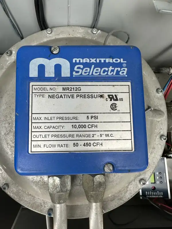 Engineered Air HE321/O M-TRAC4 Industrial Direct Fired Air Heater. Natural Gas, 32000CFM, 540RPM, 575V, 60HZ, 3PH, 60A, 25HP. Maxitrol Selectra MR212G Negative Pressure Modulator Regulator Valve, 5PSI, 10000CFH, 2"-5" W.C.