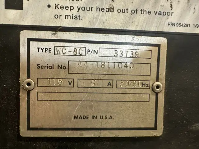 ESAB HELIARC 352 AC/DC TIG WELDER WELDING POWER SOURCE WITH WC-8C COOLANT CIRCULATOR (P/N: 33739, S/N: AA-I811040, 115V, 6A, 50/60HZ)