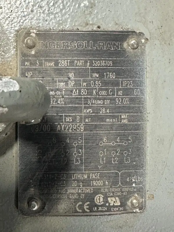 MOTOR MODEL: 32036709, 575V, 3PH, 60HZ, 30HP, 1760RPM.