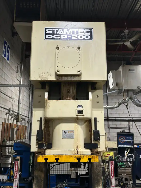 STAMTEC OCP-200 GAP 200 TON GAP FRAME PRESS. RATING POINT (UP FROM BOTTOM OF STR.): 0.236", STROKE NO.: 20-45 S.P.M, STROKE: 7.88", DIE HEIGHT: 17.73", SLIDE ADJUSTMENT 4.33".
